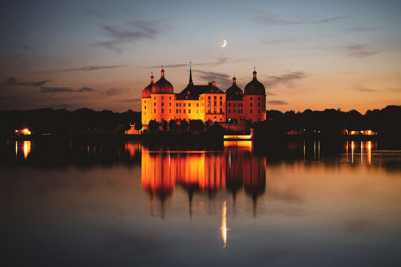 Jedes Jahr am letzten Wochenende im Oktober empfängt Moritzburg entlang des Moritzburger Schlossteiches tausende Besucher und Gäste zum traditionellen Fisch- und Waldfest.Freuen Sie sich auf die traditionellen Moritzburger Fischzüge und auf das anschließende Showkochen. Viele Tipps und Tricks zur Zubereitung von verschiedenen Fischgerichten werden Preis gegeben. Weitere Highlights sind die Fischversteigerung, der Frischfischverkauf der Teichwirtschaft Moritzburg mit Alf Mahlo und der Fischkönigin. Beim Waldfest auf dem Schlossparkplatz des Staatsbetriebes Sachsenforst dreht sich alles um das Thema Wald & Holz. Ein besonderer Höhepunkt für Familien und Kinder ist der jährliche Lampionumzug, der am Samstag um 17.30 Uhr ab dem Rüdenhof beginnt und im Schlosspark endet. Highlight ist das anschließende Barockfeuerwerk hinter dem Schloss Moritzburg ab 18.30 Uhr. Weitere Informationen - https//kulturlandschaft-moritzburg.de/veranstaltungen/fisch-und-waldfest.html Copyright: Mit Blick auf das Schloss Moritzburg bei Nacht. Foto: Michael R. Hennig (DML-BY) ...