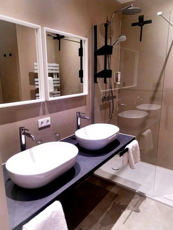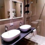 Zu dieser „Oase“ gehört auch ein nettes Badezimmer mit zwei modernen Waschbecken und einer „Walk In“ Dusche, welche mit ihrer Regendusche zum optimalen Relaxen nach einem anstrengen Tag in unserer bezaubernden Stadt einlädt.