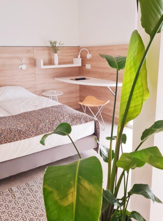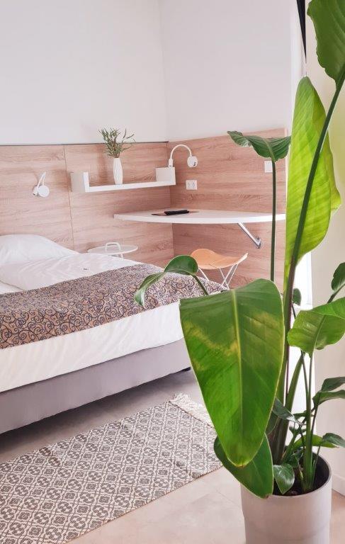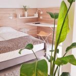 Mit seiner großzügigen modernen Ausstattung von einem Doppelbett (140×200), zwei Fletscreens TV, Schreibtisch und einem Sofa (201x80x94) mit einer Liegefläche von 160×197 bildet es eine optimale „Oase“ der Ruhe.